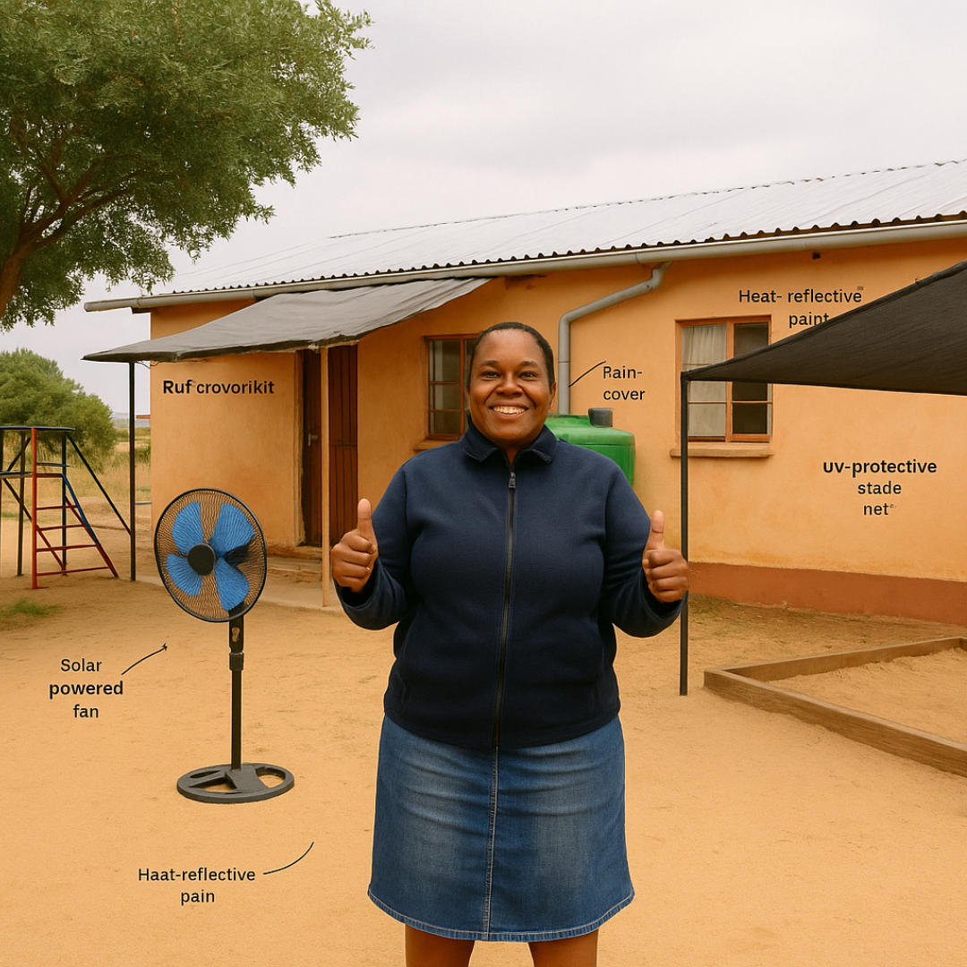 A transformative gift that brings together all essential climate-smart elements — including heat-resistant paint, shade structures, water harvesting systems, solar-powered fans or lights, and emergency rain covers. This upgrade creates a fully climate-resilient ECD centre ready to protect children in a warming world.
