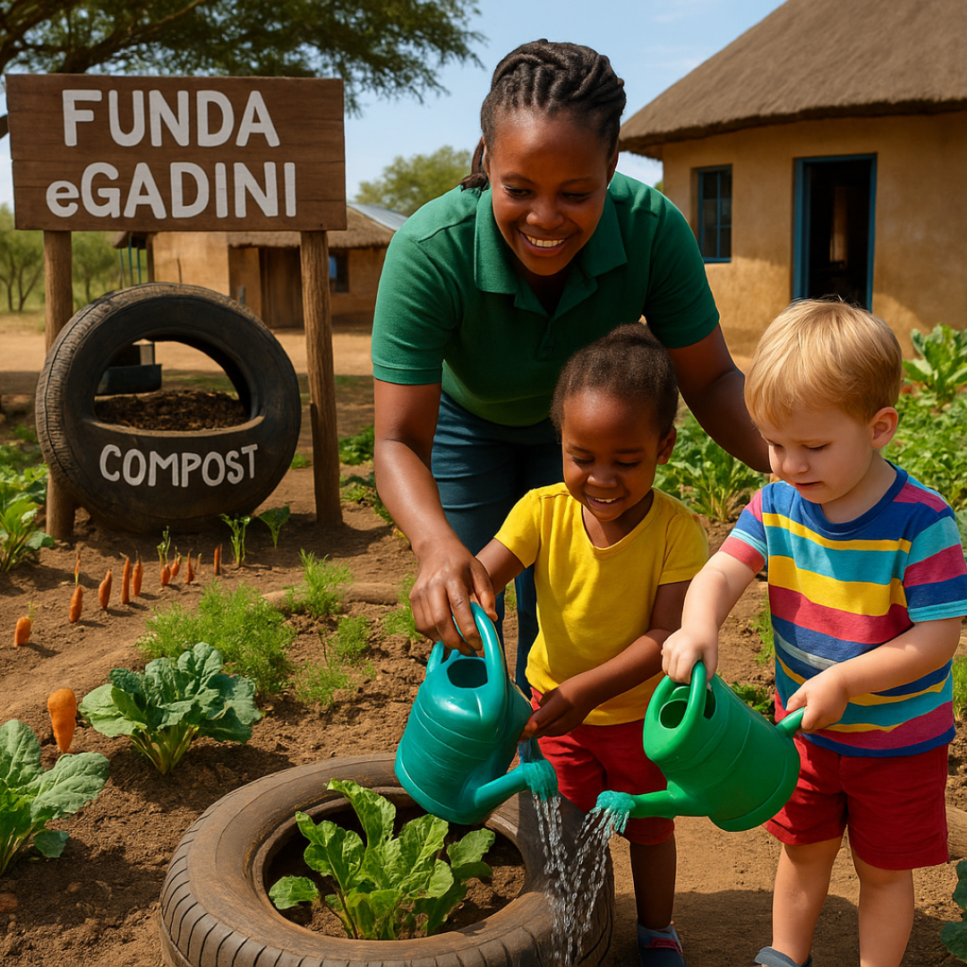 Funds the resources to support the Funda eGadini garden learning programme for one ECD centre, benefiting around 100 children. This initiative, run by Lulamaphiko and Biowatch South Africa, provides fresh vegetables, nature-integrated classroom learning, and hands-on environmental education. Children learn to grow and care for plants, while teachers incorporate nature into lessons across subjects. The approach is fully organic, earth-friendly, and rooted in indigenous knowledge, building both food security and climate adaptation skills for the future